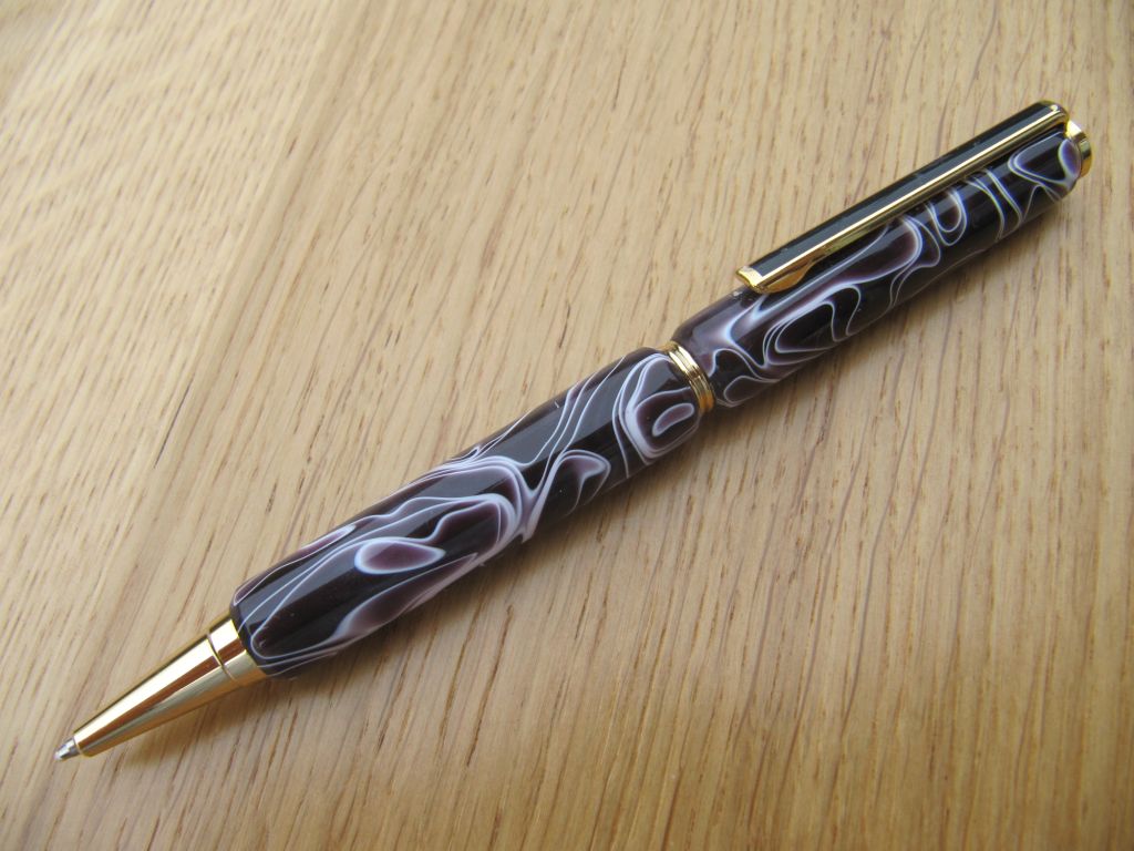 The Rotur DAYACOM 24ct Gold Twist pen kit is a high quality slimline pen with a Black Stripe clip which is well suited for beginner woodturners. The simple design of the Slimline Pen ensures quick and easy turning using the Rotur pen mandrels, 7mm bushings and a 7mm drill bit. The Rotur Dayacom pens are supplied with a Cross style refill and feature a locking twist mechanism.
