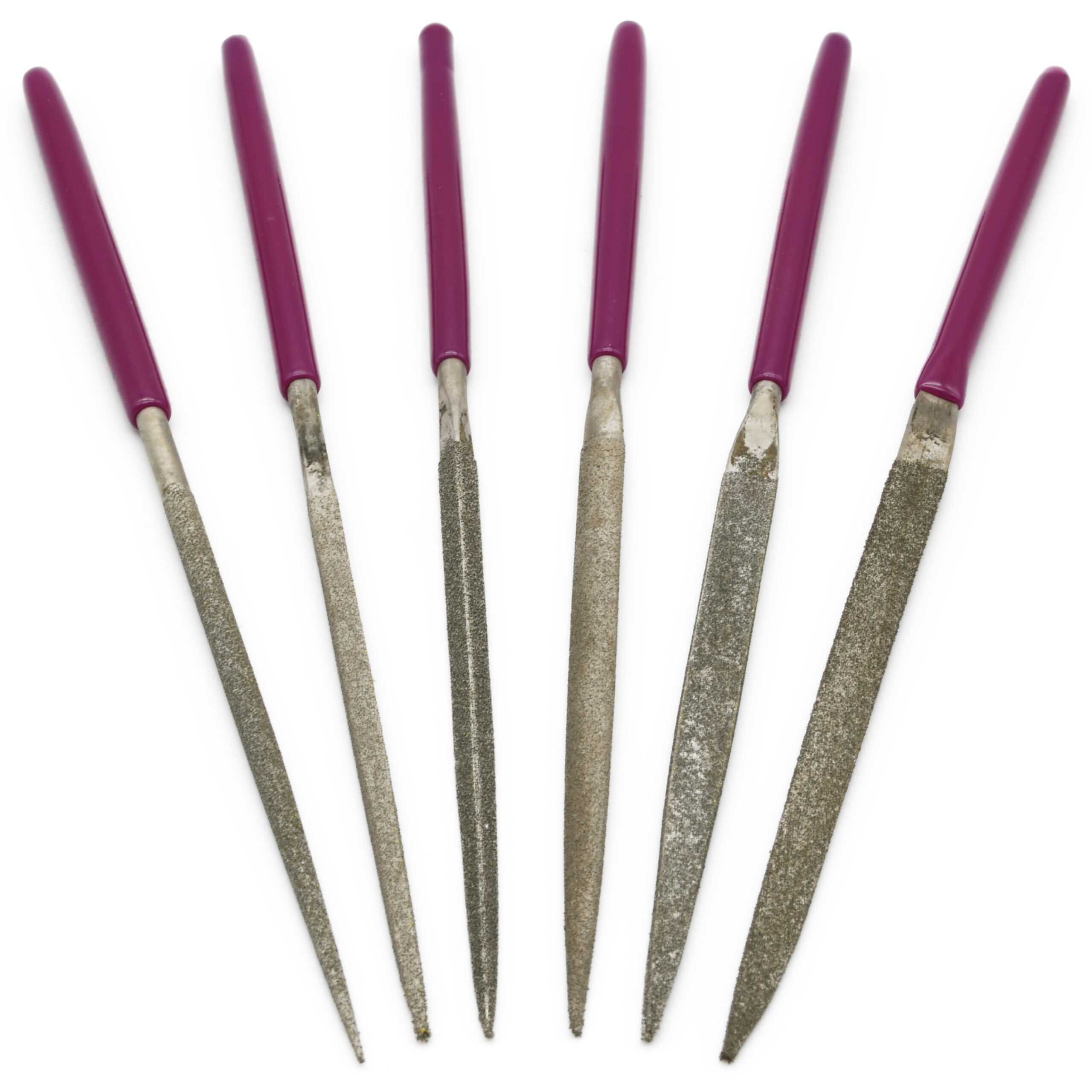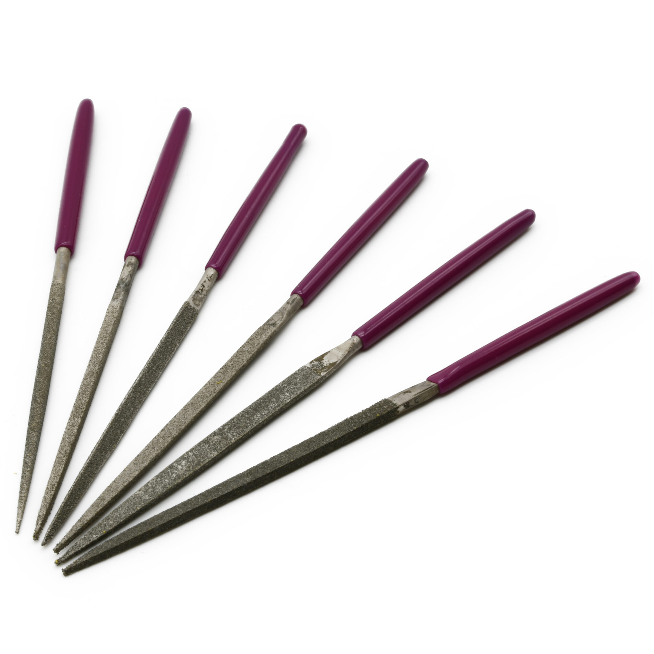 The EZE-LAP Diamond Needle Files are ideal for engineering, woodworking, and DIY sharpening jobs thanks to the high quality diamond surface. The diamond surface on a solid stainless steel substrate. The ergonomic soft grip handles are colour coded to show which grit the file is. Red handles are fine grits, and purple handles are coarse. The files are supplied in a pouch.
