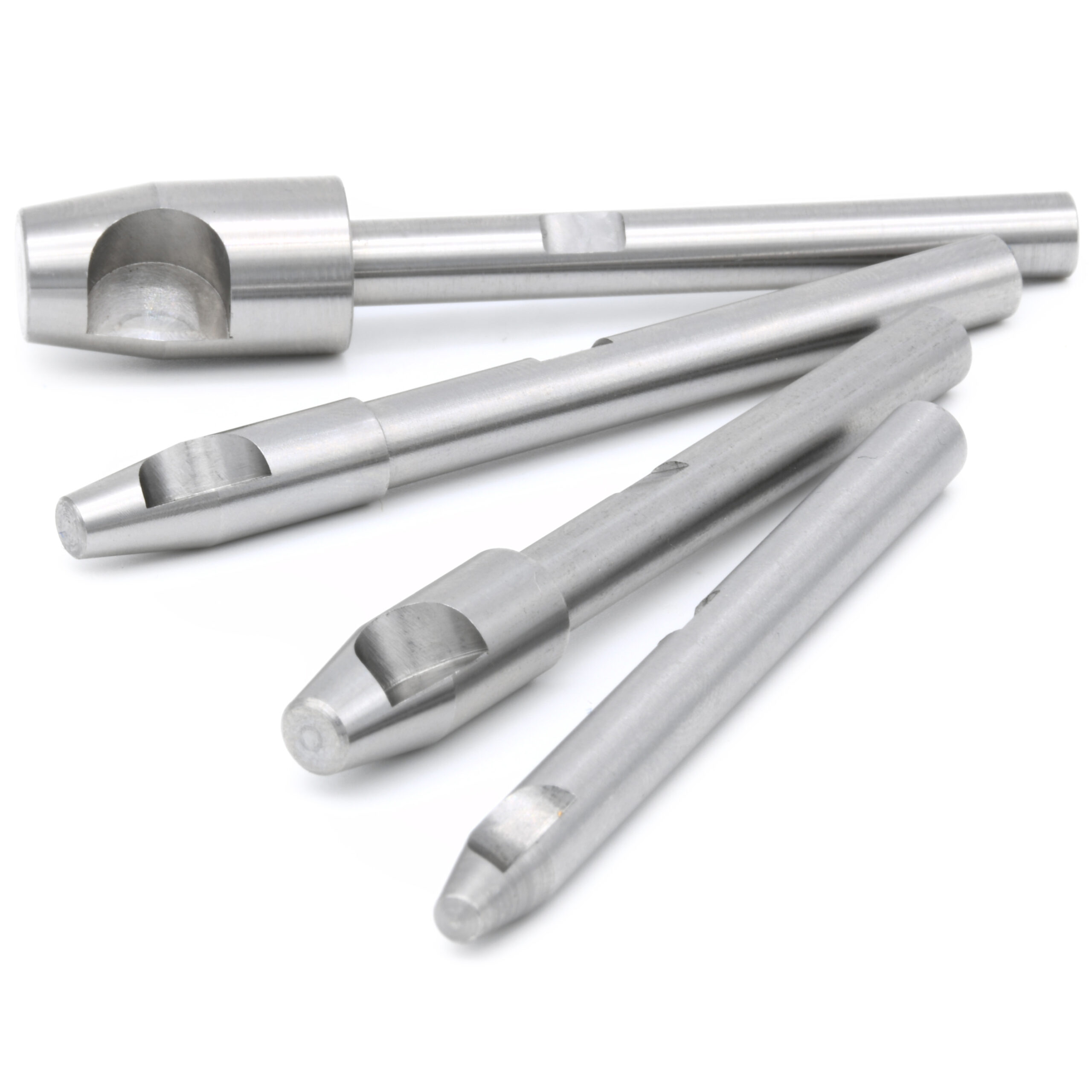 The Rotur Pen Blank Trimming Shaft is a high-quality tool designed to work with the Rotur Pen Blank Trimming Tool Heads and Kits. Available in sizes ranging from 6.17mm to 13.80mm, these shafts are made of sturdy steel to ensure durability and precision. They are compatible with all the Rotur trimming tool kits, allowing you to work with slimline pens or larger pen kits. The shaft simultaneously guide the trimming tool head and clear any excess glue from the inside of the brass tube.
