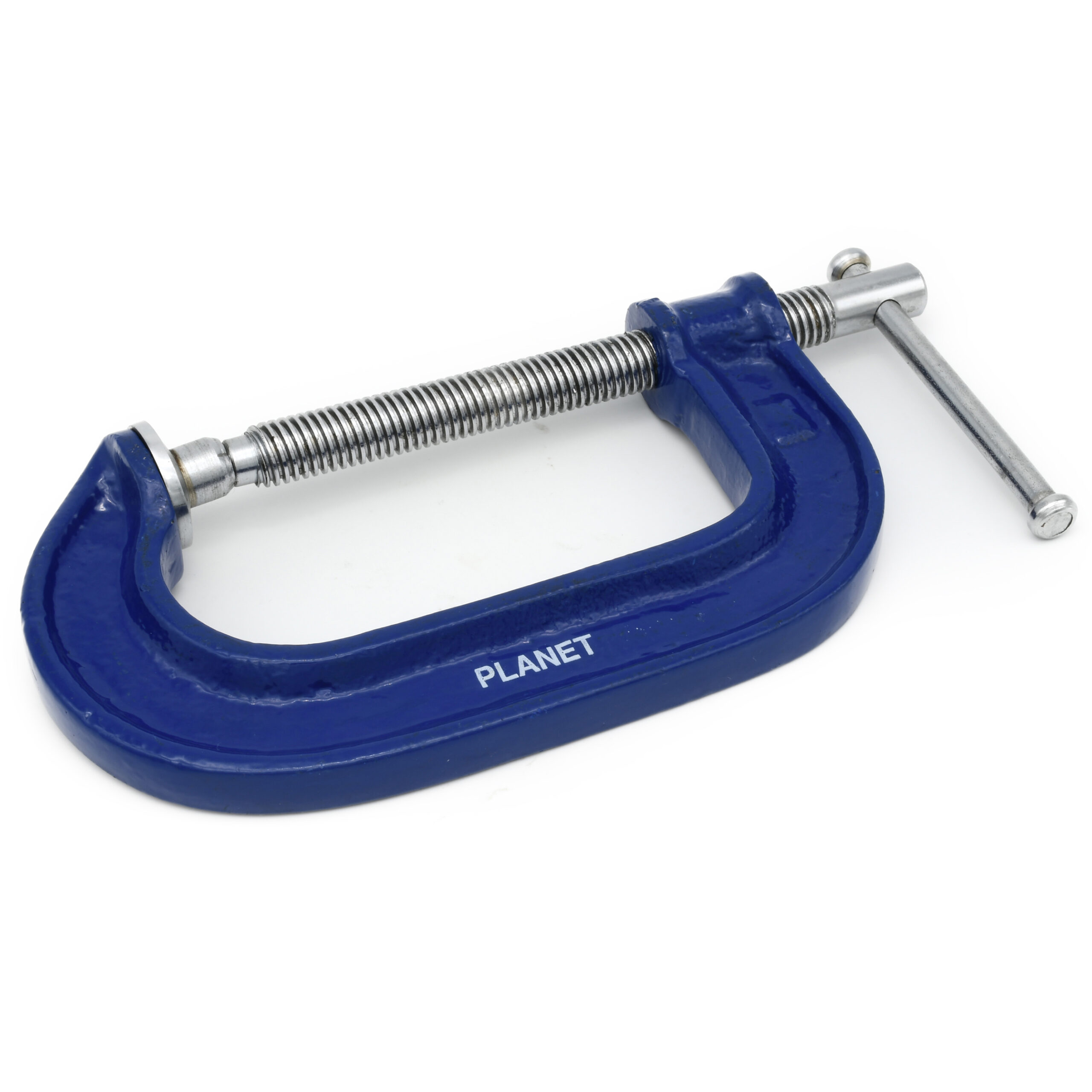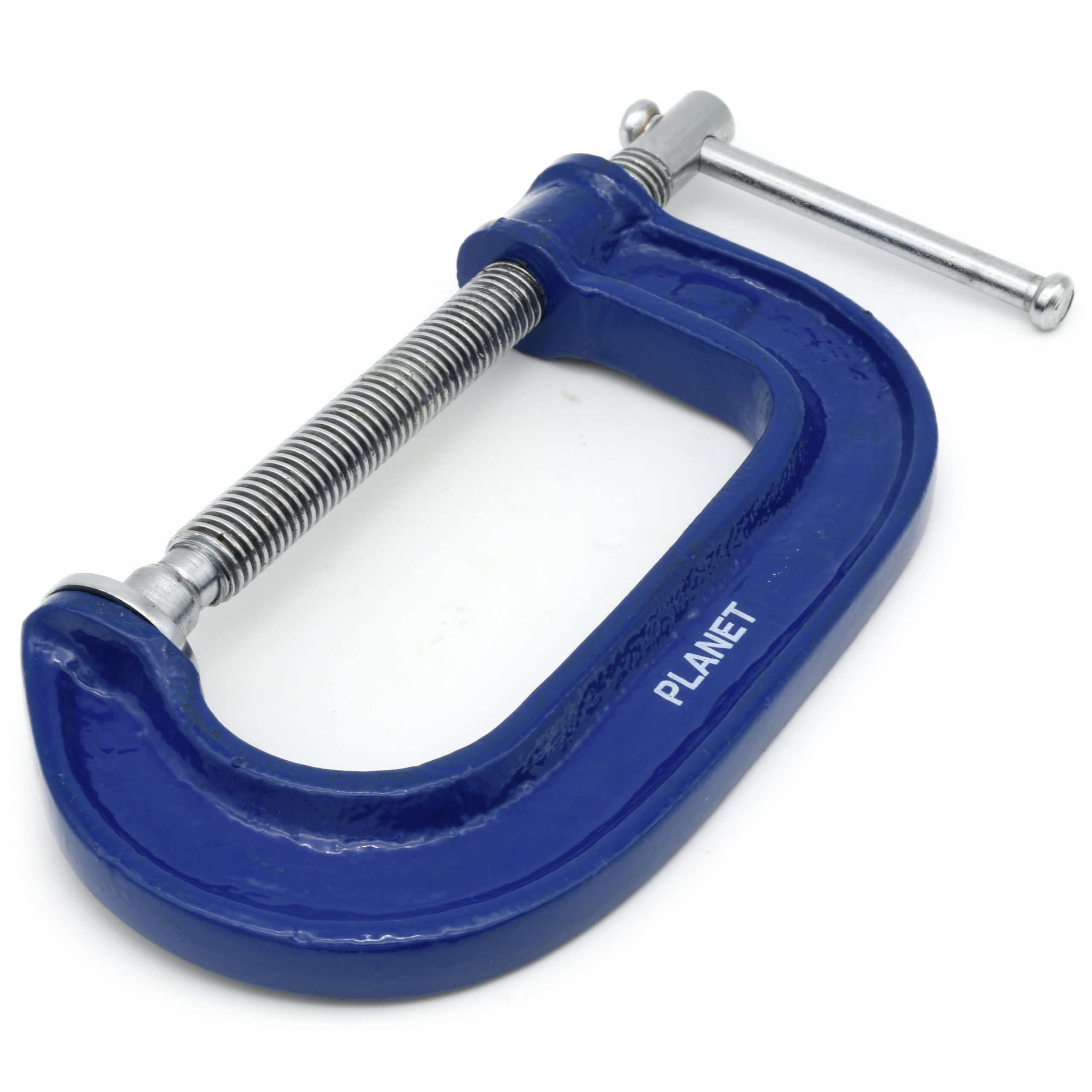 The Planet ‘G’ Clamp has a slim-sectioned, drop-forged steel frame that provides strength and durability. This makes it advantageous in confined spaces. The key features are the twin start thread, fused drop handle and adjustable steel swivel shoe. The medium duty build of these clamps makes them ideal for woodworking without being too big or bulky.