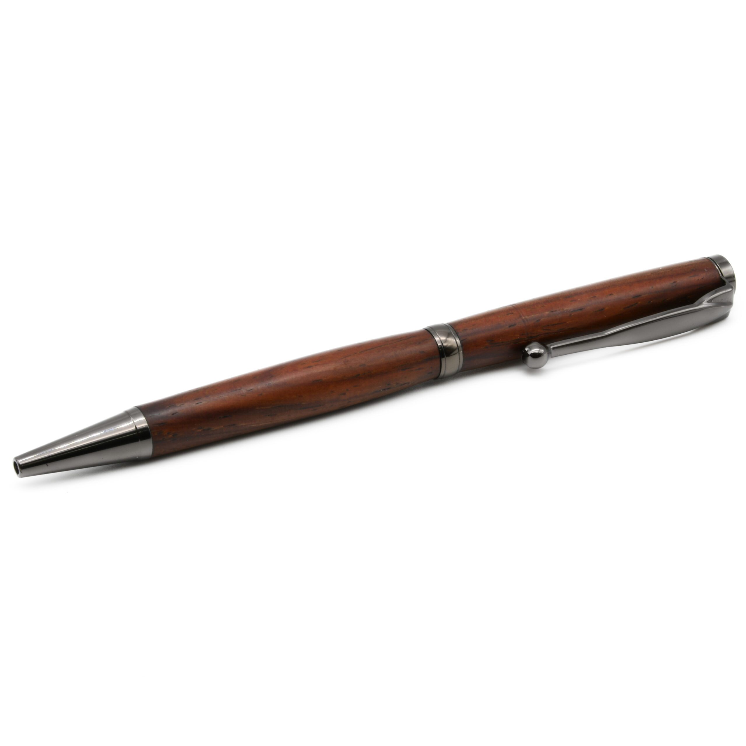 The Rotur Premium Gun Metal Twist Pen Kit is a sleek and sophisticated writing instrument that is both stylish and functional. The kit includes all the necessary parts to assemble the pen, including a locking twist mechanism, a ballpoint refill, and a decorative band.