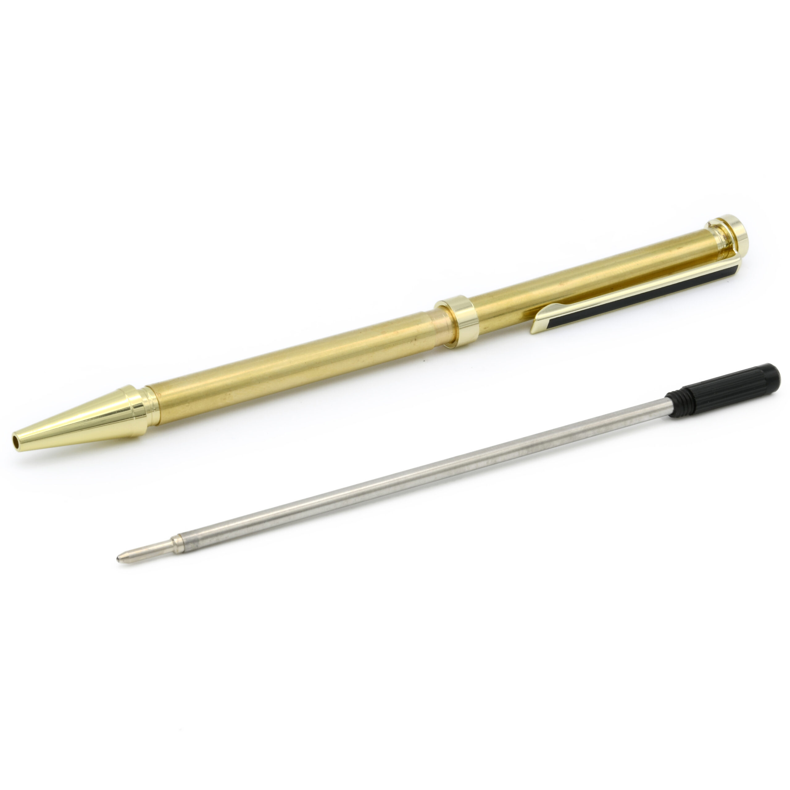 The Rotur Standard 7mm Gold Twist Pen is a high-quality writing instrument that combines style, functionality, and durability. The pen features a sleek, gold-plated brass barrel and a black stripe clip that exudes elegance and sophistication. The locking twist mechanism allows for easy and smooth operation, while the sturdy clip ensures secure attachment to a notebook, shirt pocket, or purse.